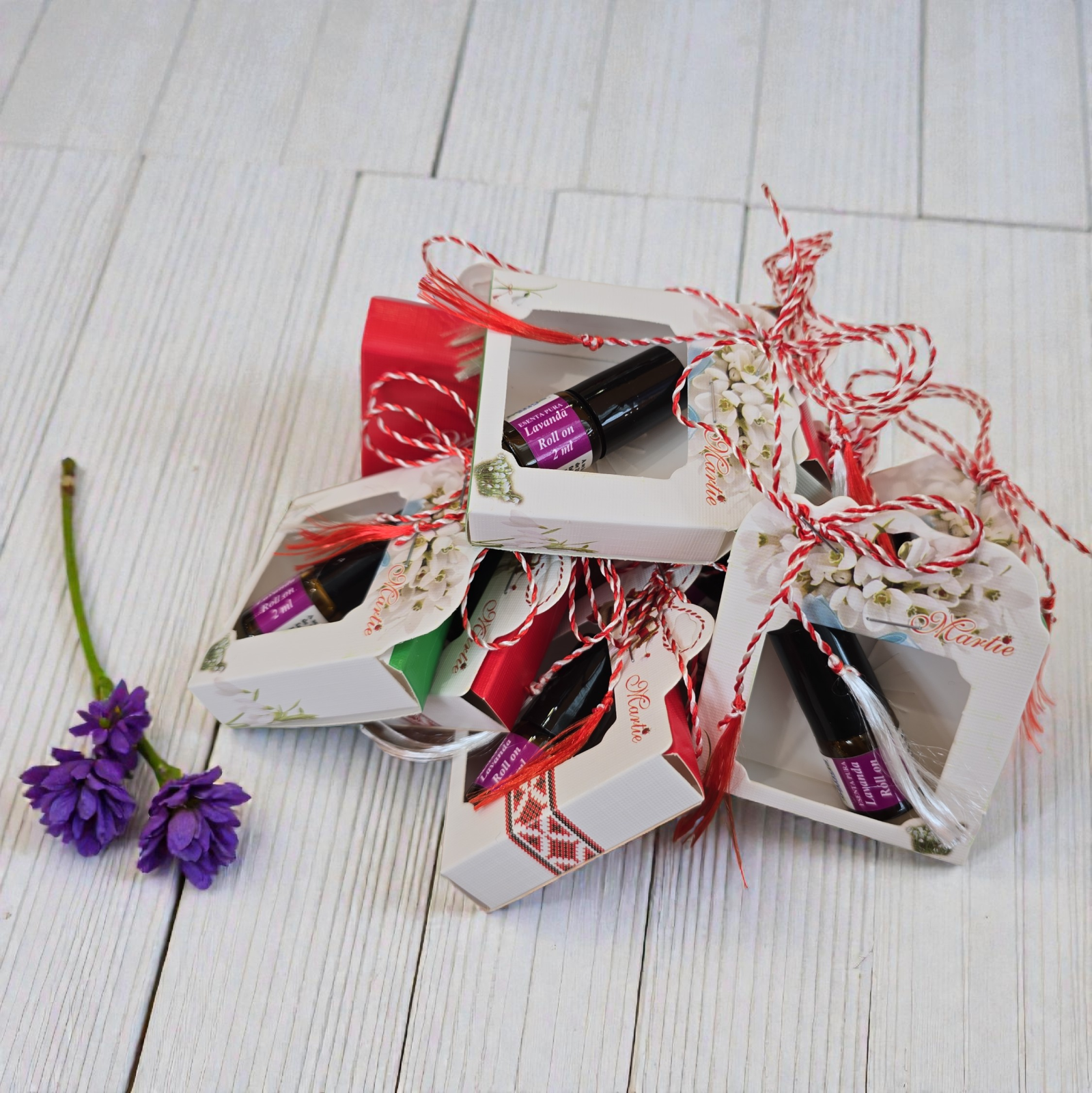 Cadoul conține un roll-on de 2 ml cu ulei esențial de lavandă organică, ambalat într-o cutie specială de Mărțișor.